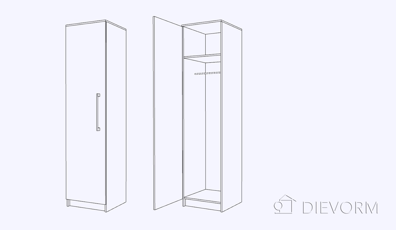 Bij DIEVORM realiseren we ons dat niet elke kast volledig op maat gemaakt hoeft te worden. Daarom introduceren wij de standaard kast. Deze kast kunt u volledig opbouwen naar de maat die u nodig heeft. In onze standaard kasten is altijd een kledingroede en schap geplaatst. Heeft u toch meer nodig? Dan kunt u het eenvoudig upgraden.