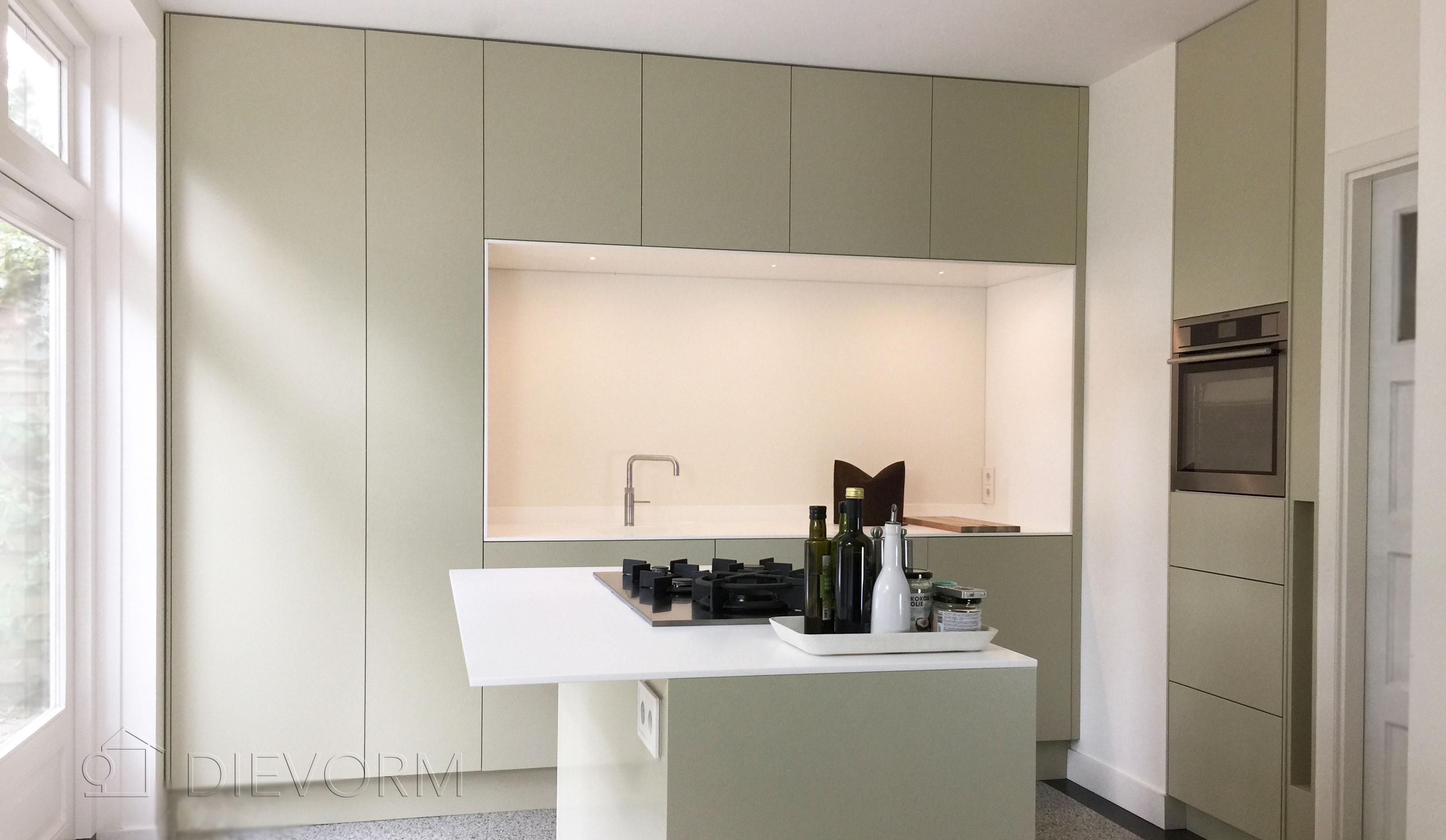 Dan is er nog het kookeiland. Zoals eerder genoemd worden kookeilanden vaak gebruikt in combinatie met een andere keukenopstelling. Toch kan een kookeiland ook alleen als een keuken dienen. In het eiland worden dan de wasbak en een kookplaat toegevoegd. Er is dan de optie om met een kleine inbouwkoelkast te werken of om een kastenwand te maken en hierin alle inbouwapparatuur te plaatsen. Een kookeiland is de ideale keukenopstelling voor de keukenliefhebber. En dat is niet zomaar. Met een keukeneiland creëert u meer dan alleen een keuken. Een kookeiland is, naast een handige plek om te koken, ook een gezellige plek waar je heerlijk kan ontbijten, met vrienden kan dineren of om te borrelen.